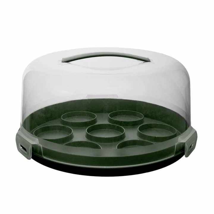 Keep your baked goodies fresh and safe! The double sided base fits 25cm/10″ cakes or 7 cupcakes and is perfect for snacks too. Features an easy-carry handle, three locking clips to ensure freshness is sealed. This carrier is ideal for any occasion – From Christmas to birthday parties, anniversaries or other holidays, you can’t go wrong with this useful tray.