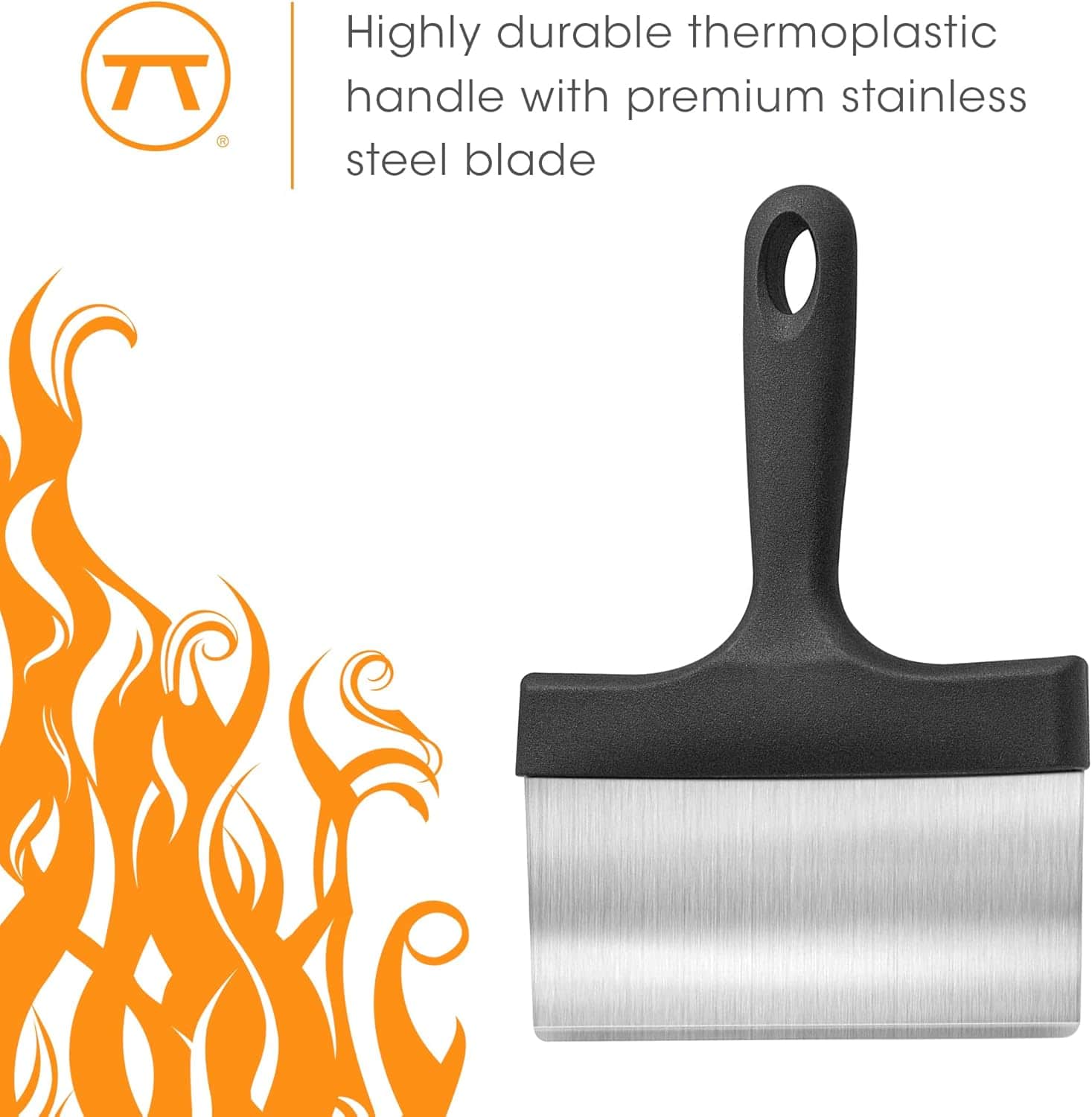 - PREMIUM HANDLE- The polymer handle is high strength so it will not bend and provide more leverage while scraping. This makes it easier and safer to clean your griddle. The handle is also comfortable to hold and comes with a loop in the handle to give you more storage options.