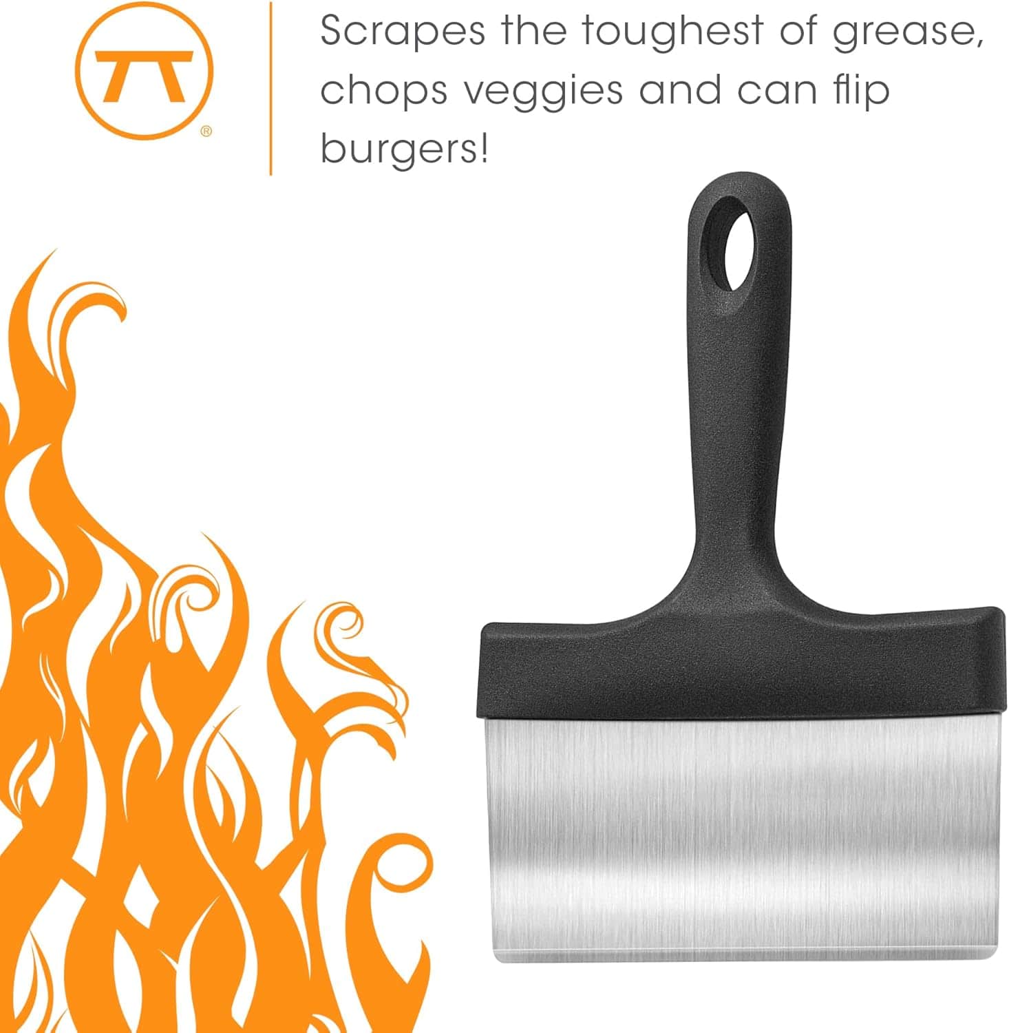 - NO HASSLE CLEANING- The beveled edge on the tip of the stainless steel griddle scraper cuts through grease with ease and cuts back on the time you have to spend cleaning.