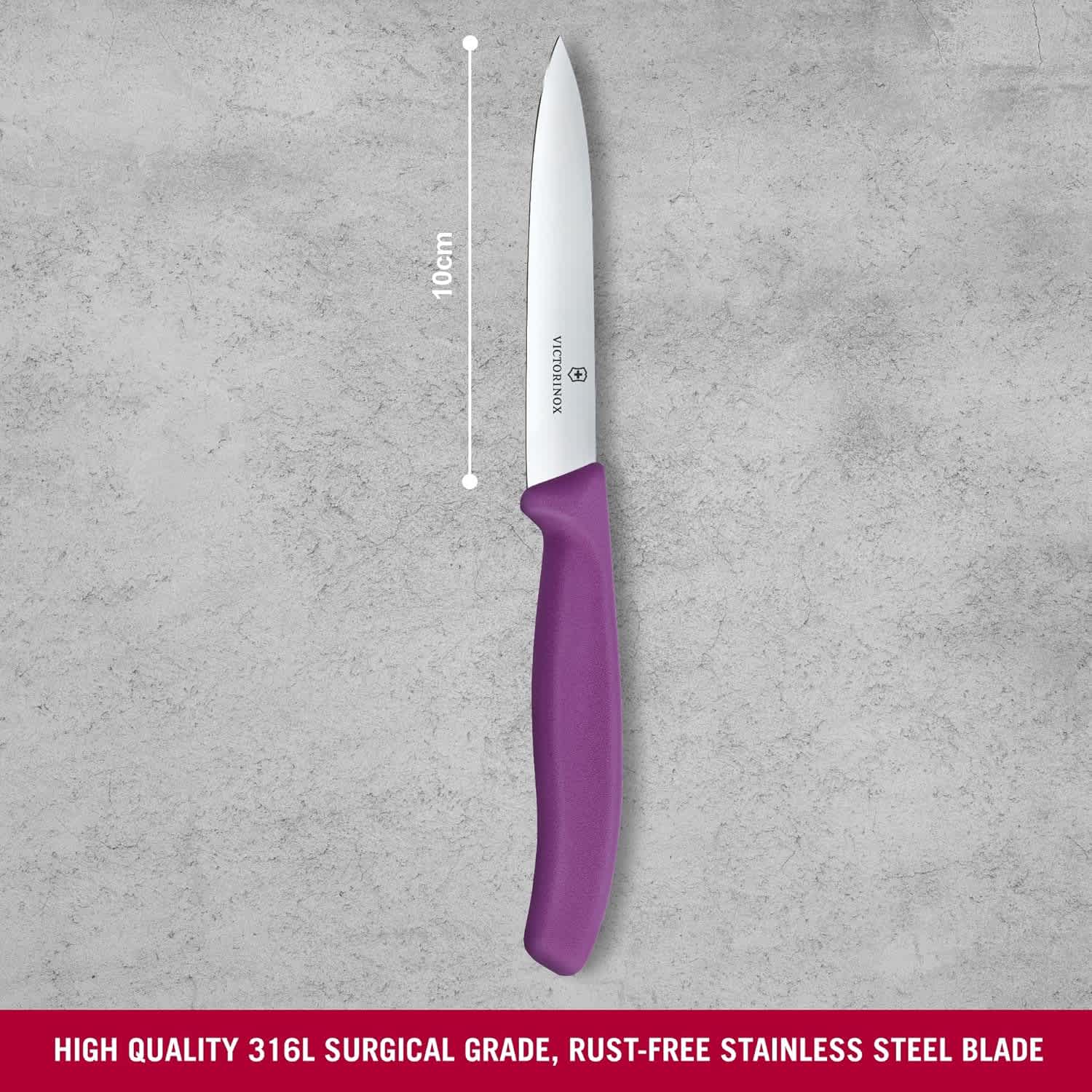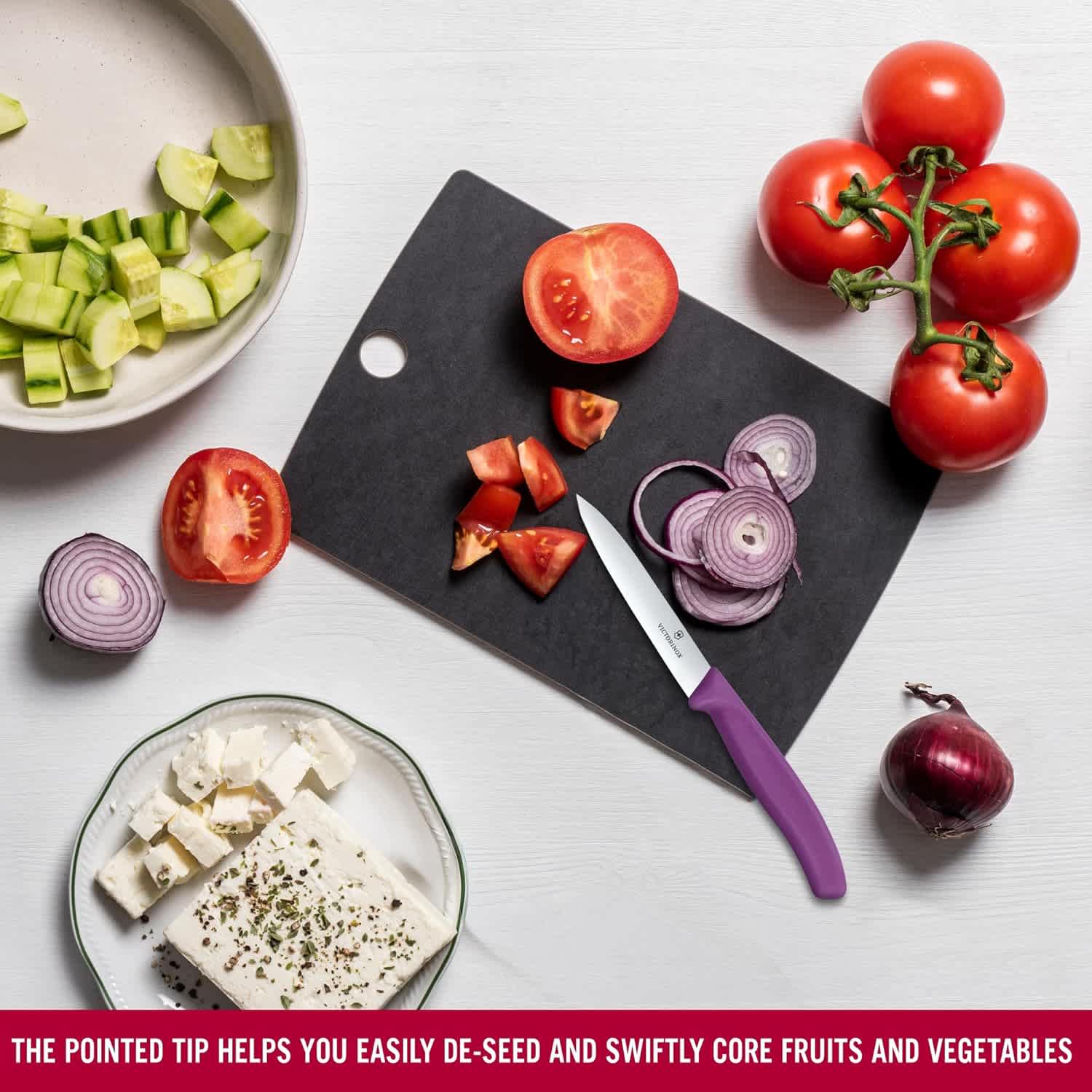A paring knife is every chef’s go-to tool for precision jobs in the kitchen, and our Swiss Classic Paring Knife 4″ is a knife drawer standout not only for its fresh colour palette but also for its sharp edge and pointed tip. Expertly remove pepper seeds, swiftly core an apple, slice a pile of vegetables into sticks or finely dice them into perfect little squares – whatever job you give it, the smooth, uniform cuts of this Paring Knife will result in dishes that are as beautiful as they are nutritious.